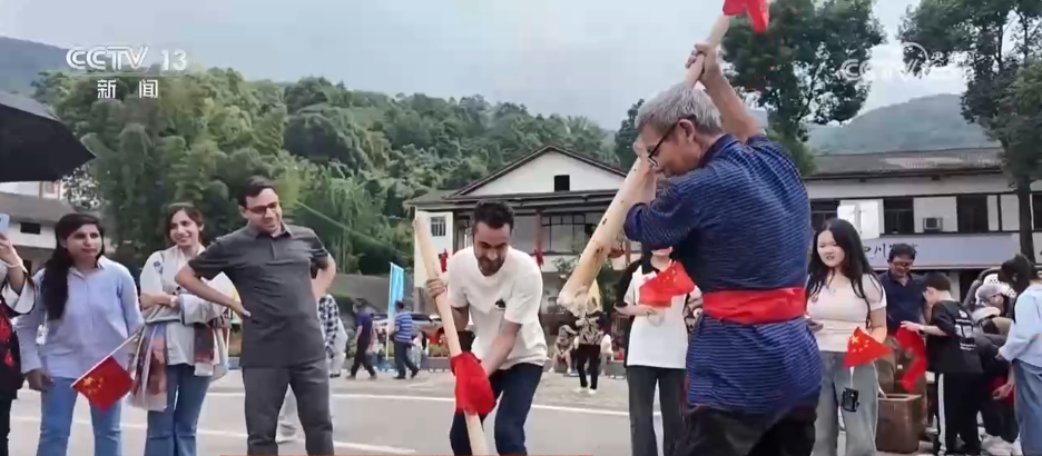 除了“看到”,外国游客更渴望“融入”。在安徽池州石台县的皖南小村落里,外国游客沉浸式体验传统村落的生活气息。