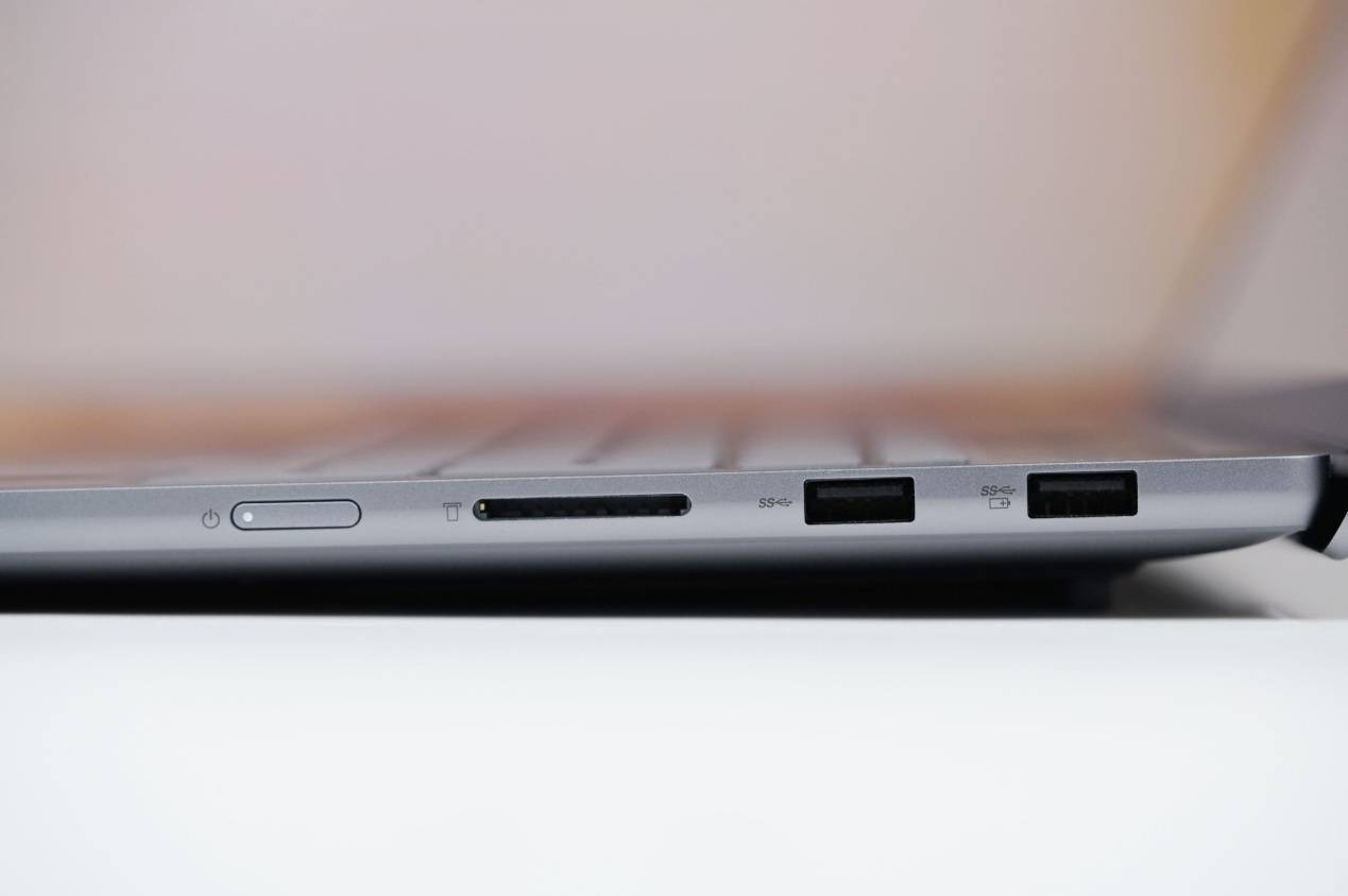 左侧配备 1 个HDMI 2.1(支持 4K 144Hz 输出)、2 个雷电 5 接口(40Gbps 带宽,可外接显卡坞)与 3.5mm 耳麦合一接口,其中,雷电4接口支持最大140W私有协议充电、100W PD充电和DP2.1 80Gbps视频输出,可外接高分辨率显示器、高速移动硬盘等外设;HDMI 2.1接口支持4K 144Hz视频输出,适合外接显示器实现双屏办公或大屏游戏体验。右侧拥有 2 个 USB 3.2 A 口与全尺寸 MicroSD 读卡器, USB-A接口可连接鼠标、键盘、U盘等常用外设,SD卡槽方便摄影师快速导入照片素材,接口配置兼顾了实用性和扩展性,无需额外购买接口转换器。