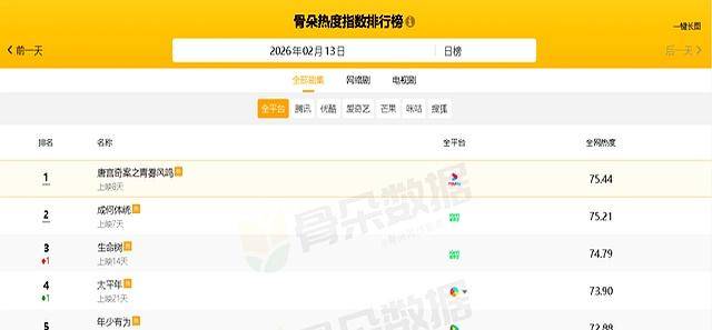 位列榜首的是《唐宫奇案之青雾凤鸣》,斩获75.44的热度,如同黑马般异军突起。这部剧的成功,简而言之,在于其“体面”。它以尊重观众智商的方式来制作内容。