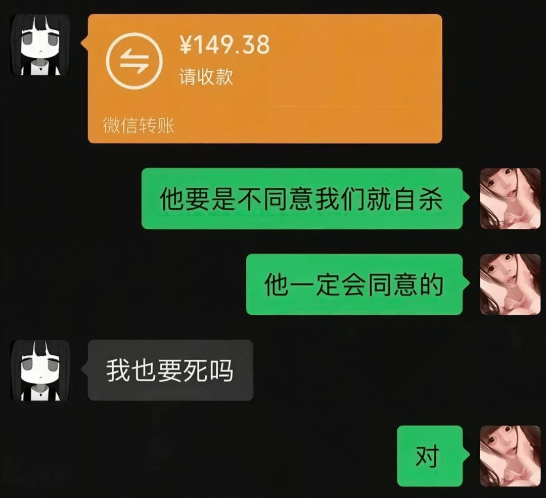 它的出处是网传的一套聊天记录,一位恋爱脑女生为了挽回自己的前男友,要求她的闺蜜陪着她一起自鲨。