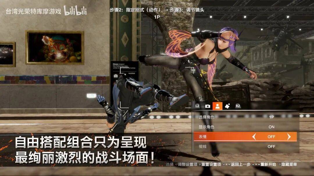本作中新增的拍照模式是一大卖点,不仅可以对角色的汗水、污渍、表情进行调整,还能在战斗中对角色的位置和摄像机视角进行调整,直到拍出自己满意的照片。