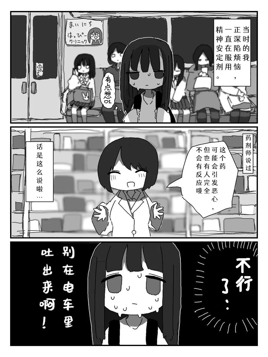 直到2月9日,百度“失传媒体吧”的网友FUYOMKN发布了帖子,溯源到这个表情包的出处是日本画师@抹茶オレ在2020年的推特上发布的一则短篇漫画:原作中的场景,并非是少女生无可恋,只是在服药后的电车上拼命忍住不吐出来而已。