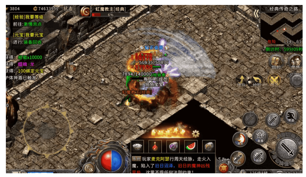 :复刻经典地图如盟重省、比奇城,融入冰雪主题视觉(如飘雪城镇、冰晶洞穴),并重现祖玛七层、赤月峡谷等副本,每一次探索都充满收获感。