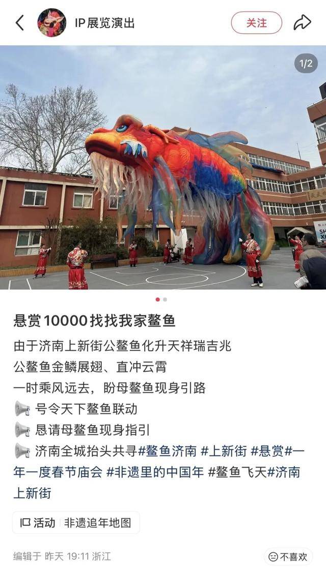 为了找到这只鳌鱼,人们开始关注它飞过的街道,飘过的天空。原本可能被忽略的城市角落,因为一只“飞鱼”的经过而变得有趣起来。特别是春节期间来济南游玩的游客们,都被这场意外的“事件”调动起来。